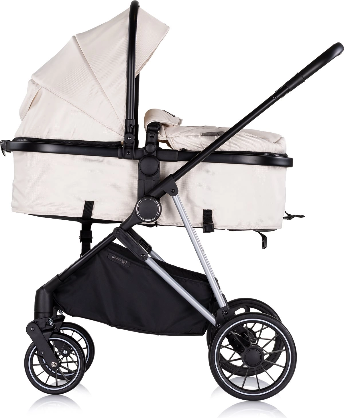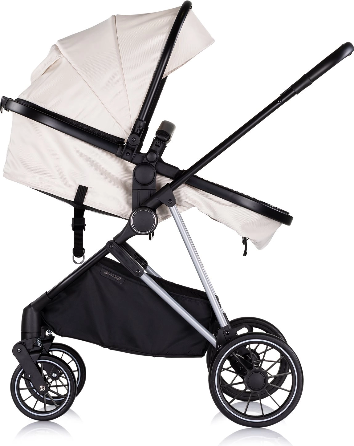 Πρακτικές λεπτομέρειες, όπως το περιστρεφόμενο κάθισμα, η ρύθμιση πλάτης 3 θέσεων, η πεντάσημη ζώνη με μαξιλάρια και ο μεγάλος αποθηκευτικός καλάθις, το καθιστούν αξιόπιστο σύντροφο για κάθε μέρα. Φυσικά συμμορφώνεται με τα πρότυπα EN1888-1 και EN1888-2.