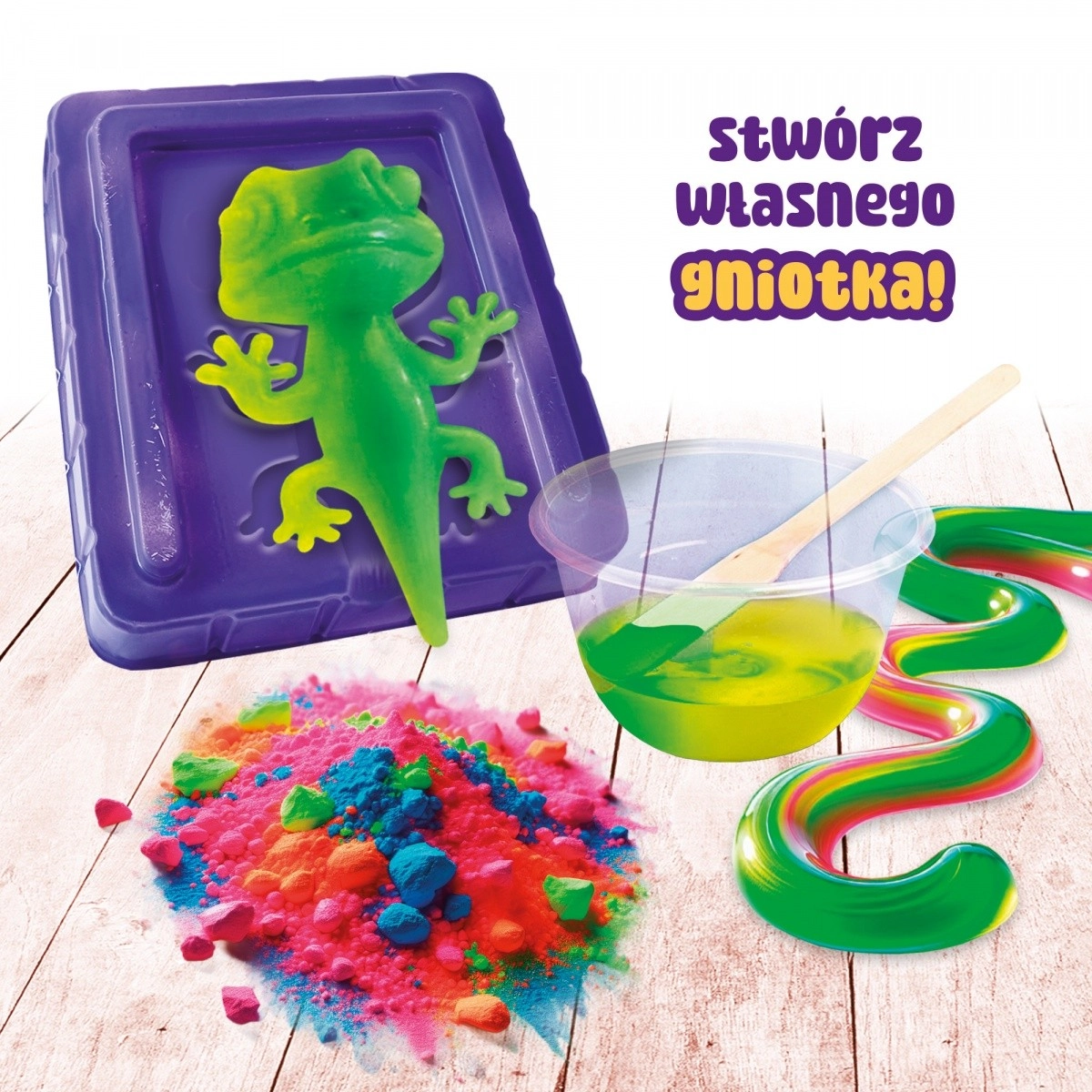 Φέρτε δημιουργικότητα και διασκέδαση στο παιχνίδι με το Σετ Slumi Science - Αντιστρες Χαμαιλέοντας! Με αυτό το πακέτο, το παιδί σας μπορεί εύκολα και γρήγορα να φτιάξει έναν φανταστικό χαμαιλέοντα που αλλάζει χρώματα. Η διαδικασία είναι απλή: αναμείξτε τα μαγικά υγρά, προσθέστε τη σκόνη αλλαγής χρώματος, ρίξτε το μείγμα στο καλούπι και δείτε τον χαμαιλέοντά σας να ζωντανεύει.