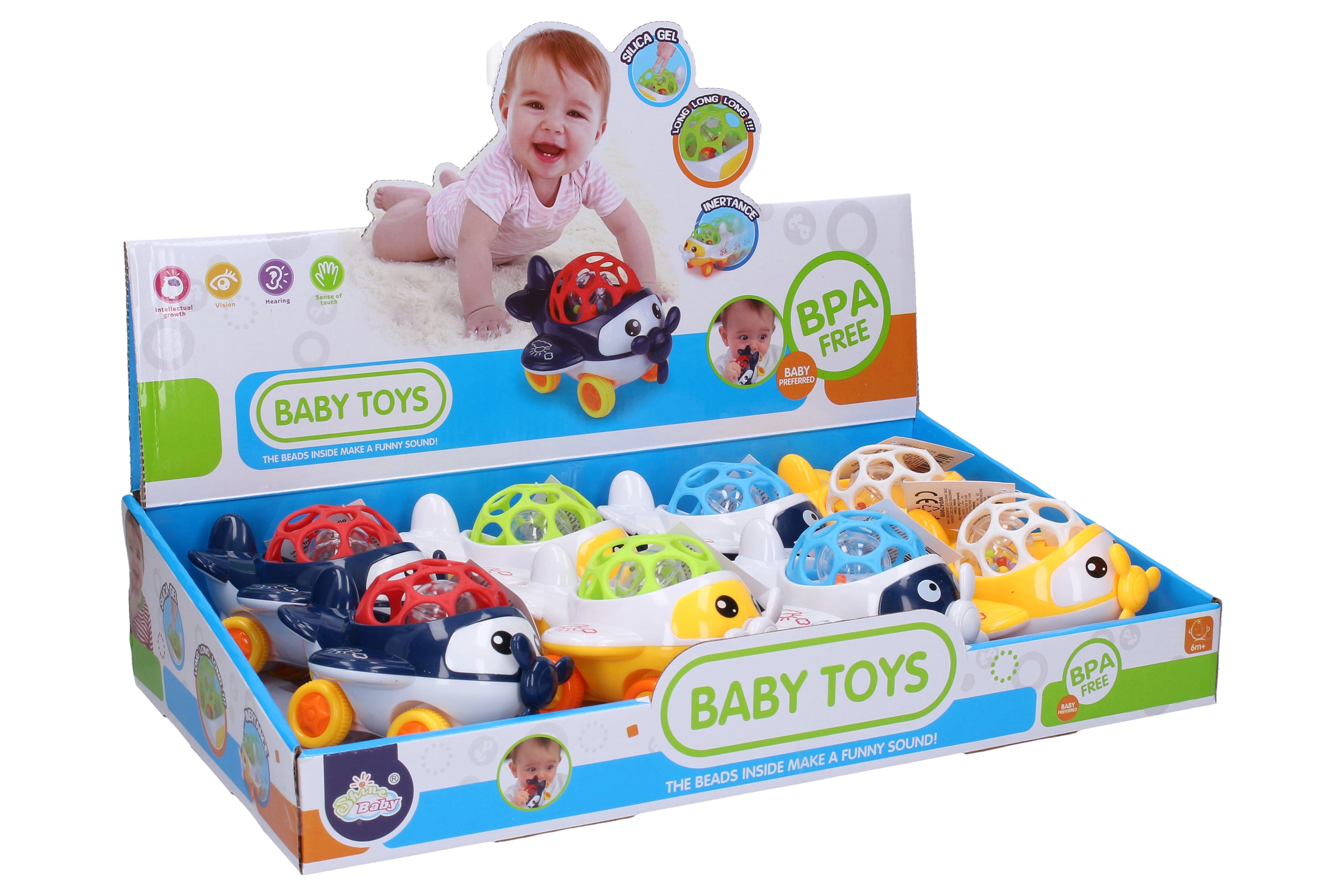 Παιχνίδι σε σχήμα αεροπλάνου με ελεύθερους τροχούς, ιδανικό για διασκέδαση και την ανάπτυξη των παιδιών. Αυτές οι κουδουνίστρες διατίθενται σε τέσσερις χρωματικές παραλλαγές: μπλε, πράσινο, λευκό και κόκκινο. Χάρη στο μέγεθός της 11x11x8 cm, είναι εύκολη για τα παιδιά να την πιάσουν και να τη χειριστούν.