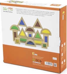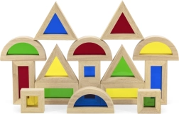 Τρίγωνα, τετράγωνα, ορθογώνια και ημικύκλια υποστηρίζουν τη χωρική φαντασία και σταθερές κατασκευές κατά τη στρώση και στοίβαξη.