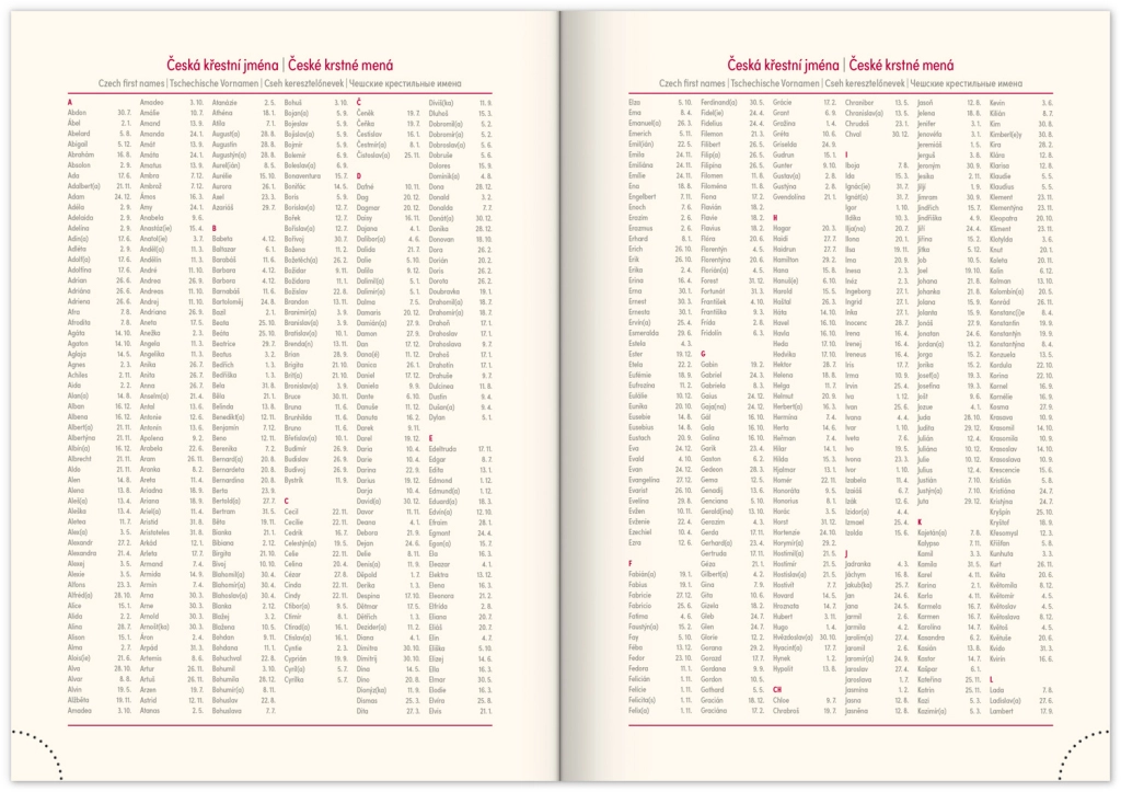 - Περιλαμβάνει εκτεταμένη λίστα τσεχικών ονομάτων και χάρτη της Τσεχίας και της Σλοβακίας.
