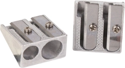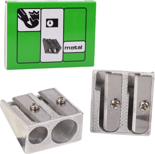Ανθεκτική μεταλλική ξύστρα ιδανική για σχολική και επαγγελματική χρήση. Χάρη στη διπλή οπή μπορείτε να ξύνετε τόσο λεπτά όσο και πιο χοντρά μολύβια και ξυλομπογιές.