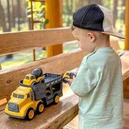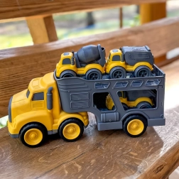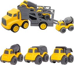 Αυτό το πολυχρηστικό σετ 4σε1 από τη WOOPIE φέρνει τον κόσμο της κατασκευής απευθείας στο παιδικό δωμάτιο. Το μεγάλο ρυμουλκό με αποσπώμενη πλατφόρμα μεταφέρει εύκολα τρία συμπαγή οχήματα, τα οποία, χάρη στα κινητά μέρη και την τριβοκίνητη λειτουργία στα μικρά αυτοκίνητα, ενισχύουν το ενεργητικό παιχνίδι και την ανάπτυξη λεπτής και αδρής κινητικότητας.