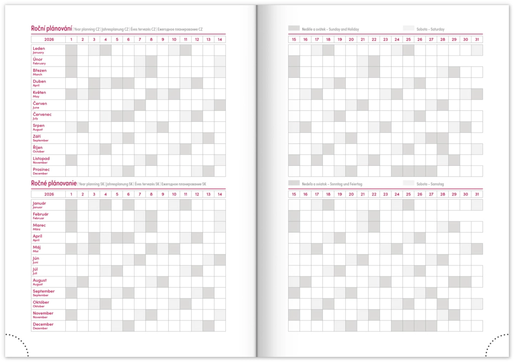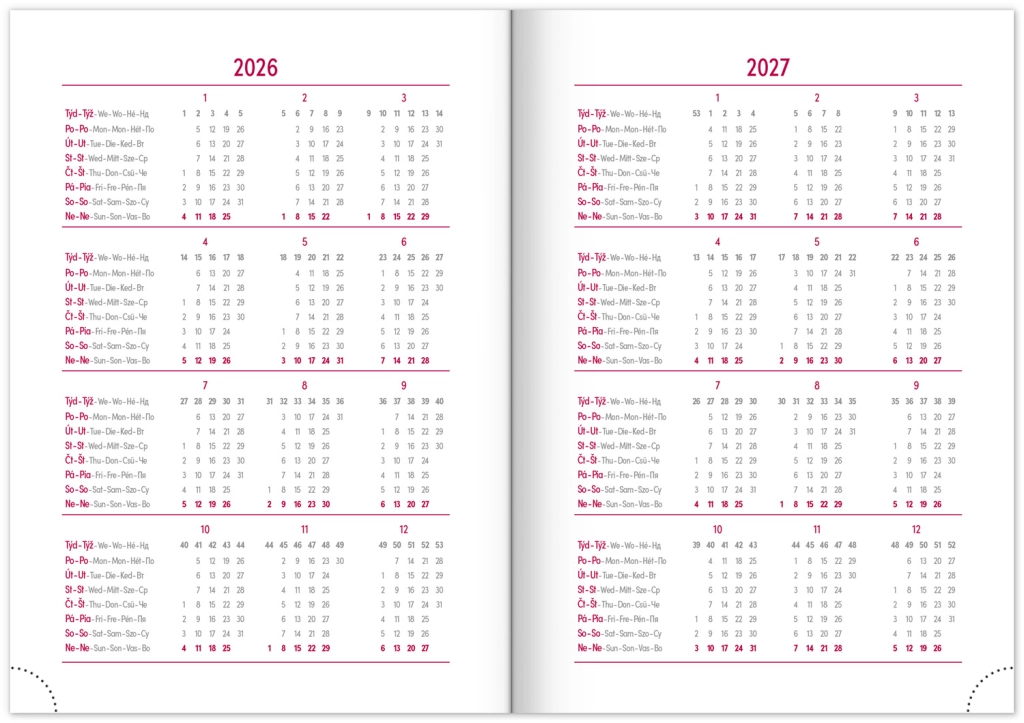 - Ημερολόγια προγραμματισμού: Περιλαμβάνει μηνιαίο ημερολόγιο προγραμματισμού για τα έτη 2026 και 2027 και ετήσιο ημερολόγιο προγραμματισμού 2026–2027.