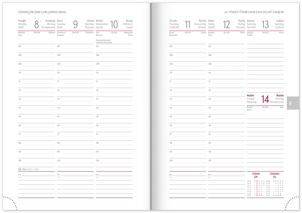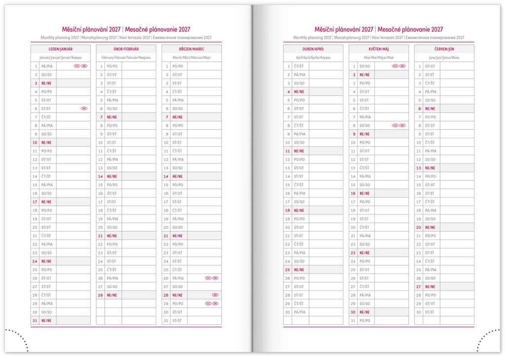 - Ημερολόγιο: Περιλαμβάνει τσεχικό-σλοβακικό, αγγλικό, γερμανικό, ουγγρικό και ρωσικό ημερολόγιο.