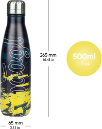 Στιλάτο θερμομπουκάλι της BAAGL με μεταλλικό καπάκι και χωρητικότητα 500 ml, ιδανικός σύντροφος για το ταξίδι. Διατηρεί τα ροφήματά σας ζεστά έως 12 ώρες και κρύα έως 24 ώρες, αποτελώντας ένα πρακτικό και μοδάτο αξεσουάρ.