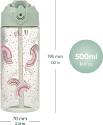Ανακαλύψτε το πρακτικό και υγιεινό μπουκάλι πόσης από tritan με χωρητικότητα 500 ml. Το μπουκάλι διαθέτει ενσωματωμένο μαλακό καλαμάκι και ανακλινόμενο στόμιο για εύκολη πόση. Με βάρος μόλις 135 g είναι ελαφρύ και εύκολο στη μεταφορά. Κατασκευασμένο από υλικό ασφαλές για την υγεία – tritan, αποτελώντας μια ασφαλή επιλογή για καθημερινή χρήση.