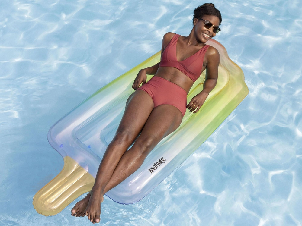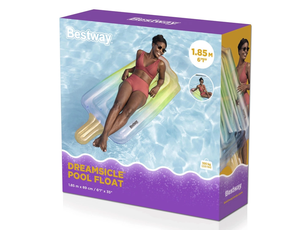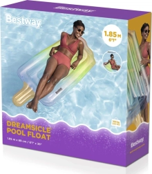 Ανακαλύψτε τη μαγεία του φουσκωτού στρώματος Bestway σε σχήμα παγωτού, που ξεχωρίζει για τον πρωτότυπο σχεδιασμό και τα ζωντανά χρώματα. Το στρώμα δεν είναι μόνο ελκυστικό οπτικά, αλλά χάρη στις διαστάσεις 185 cm x 89 cm προσφέρει αρκετό χώρο για άνετη ξεκούραση. Το μέγιστο φορτίο 90 kg επιτρέπει τη χρήση του τόσο από ενήλικες όσο και από μεγαλύτερα παιδιά.