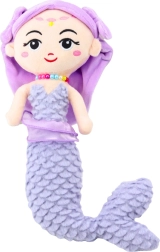 Η γοργόνα έχει κομψά κεντημένο πρόσωπο και μικρές χρυσές και ροζ λεπτομέρειες στο μέτωπο με χαμογελαστά ματάκια. Τα ανοιχτά μωβ μαλλιά είναι διακοσμημένα με υφασμάτινη στέκα με φιογκάκια στα πλάγια και στον λαιμό φορά πολύχρωμο κολιέ από χάντρες. Ολόκληρος ο σχεδιασμός αποπνέει απαλότητα και παραμυθένια ατμόσφαιρα.