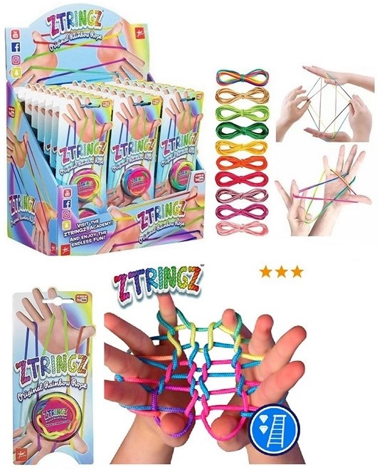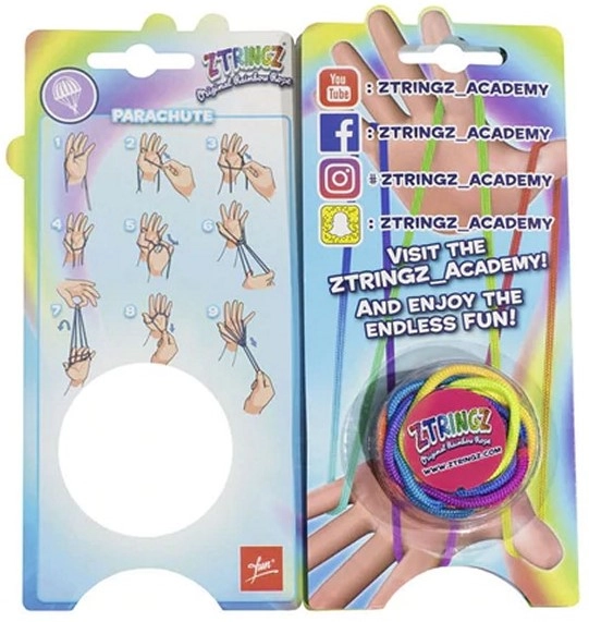 Απολαύστε ώρες διασκέδασης με το Ztringz μαγικό κορδόνι. Αυτό το πολύχρωμο σχοινάκι σάς επιτρέπει να δημιουργείτε απίστευτα σχήματα και κόλπα – από αλεξίπτωτο μέχρι χάμπουργκερ.