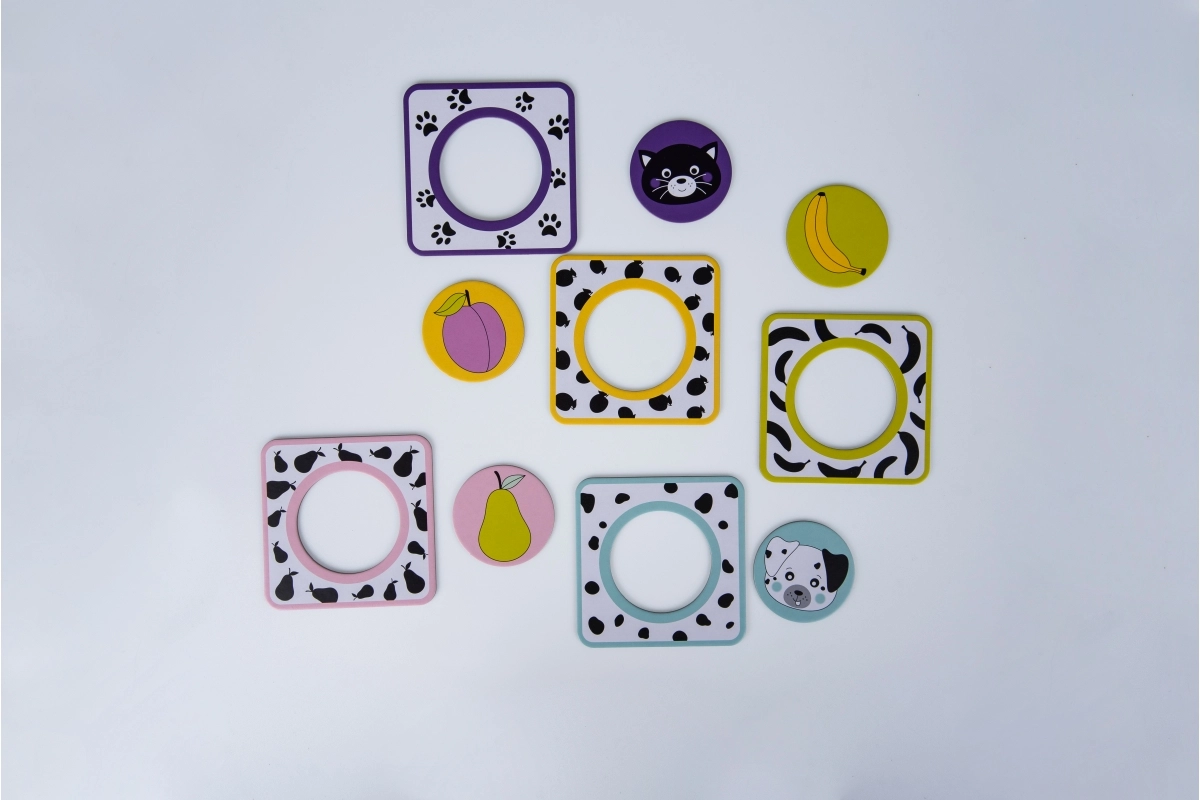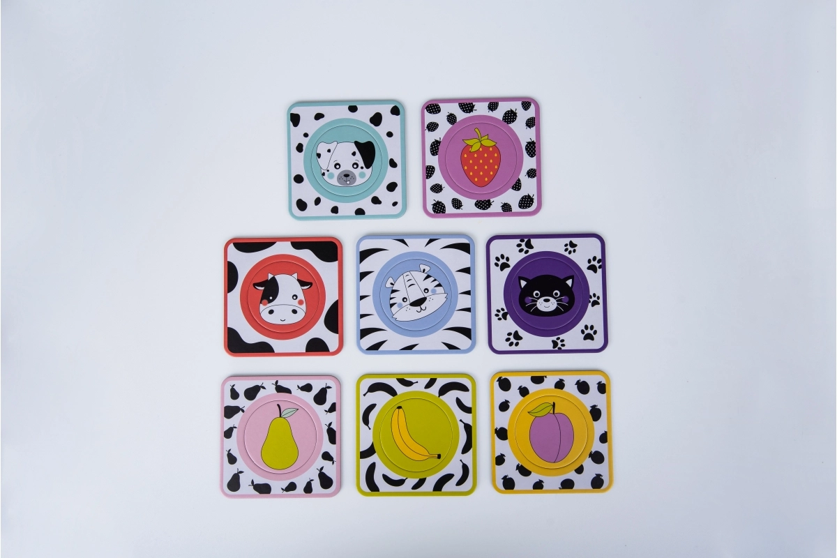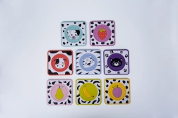 Ανακαλύψτε τον παιχνιδιάρικο τρόπο μάθησης με το παζλ Gagagu. Οι στρογγυλές καρτέλες με ζωηρές εικονογραφήσεις φρούτων και χαριτωμένων ζωικών μουτράκιων διεγείρουν την παιδική περιέργεια, εμπλουτίζουν το λεξιλόγιο και ενισχύουν τον συντονισμό χεριού–ματιού. Τα ανθεκτικά υλικά εξασφαλίζουν ασφαλή και μακροχρόνια χρήση.