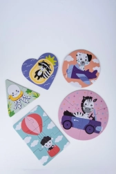 Αυτό το ποικιλόμορφο σετ περιλαμβάνει συνολικά 9 παζλ με σταδιακά αυξανόμενη δυσκολία (2–6 κομμάτια), προσαρμόζοντας ιδανικά τον ρυθμό εξέλιξης του παιδιού σας. Τα μεγάλα, εύκολα στο κράτημα κομμάτια και οι παιχνιδιάρικες εικονογραφήσεις με ζωάκια ενισχύουν την αυτοπεποίθηση στη συναρμολόγηση και τη χαρά της επιτυχίας.
