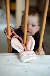 Συντήρηση: Πριν από την πρώτη χρήση πλύνετε τα «αυτιά» στους 30°. Μην πλένετε το ξύλινο δαχτυλίδι, απλώς ξεπλύνετέ το με νερό.