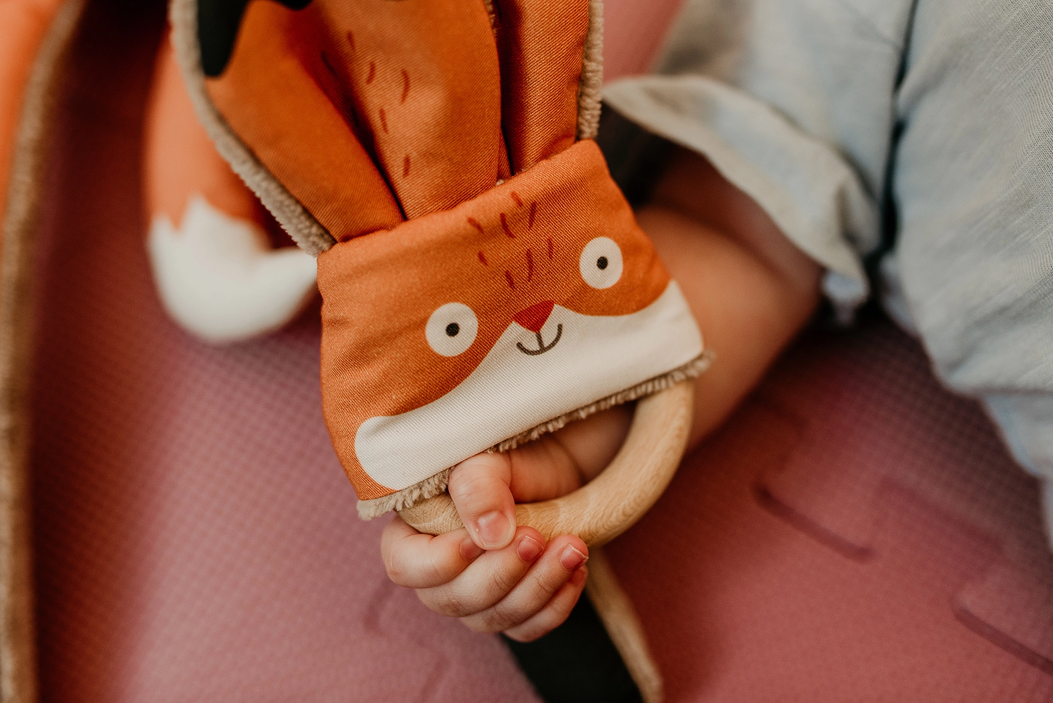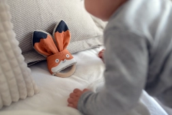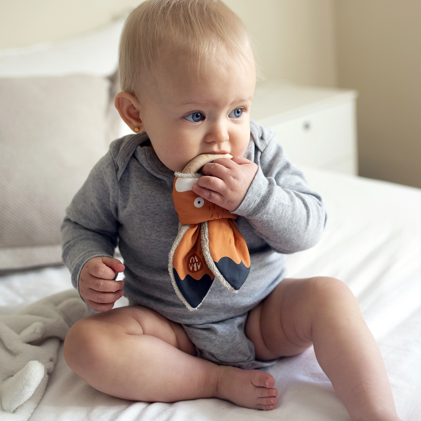Το παιχνίδι οδοντοφυΐας Αλεπού της Ababu συνδυάζει πρωτότυπο design με ασφάλεια για τους μικρούς. Τα υφάσματα με πρωτότυπη εκτύπωση είναι από 100% βαμβάκι, με πιστοποίηση για παιδιά έως 3 ετών. Ο δακτύλιος είναι από φυσικό ξύλο οξιάς, χειροποίητος στη Βυσότσινα.