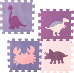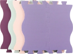 Τα παζλ μονώνουν από το κρύο του δαπέδου και απορροφούν εξαιρετικά τις πτώσεις, γεγονός που τα καθιστά ιδανικό χώρο για μπουσούλημα, παιχνίδι και εκμάθηση βαδίσματος. Η αντιολισθητική υφή εξασφαλίζει ότι το παιδί μπορεί να παίζει με ασφάλεια τόσο στο δωμάτιο όσο και στη βεράντα. Οι χρωματικοί τόνοι ροζ, μωβ και τιρκουάζ προσδίδουν στην επιφάνεια μοντέρνα εμφάνιση και στυλ για το παιδικό δωμάτιο.