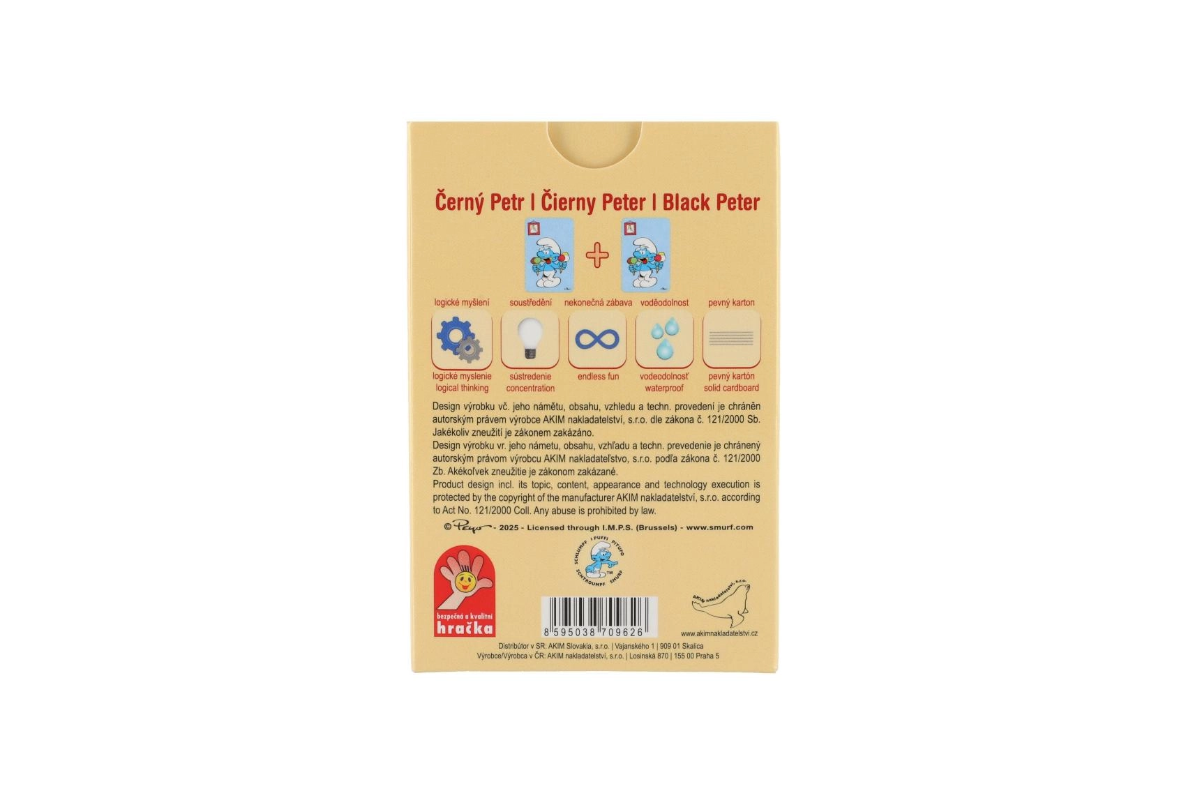 Το παιχνίδι Μαύρος Πέτρος με θέμα τα Στρουμφάκια φέρνει δοκιμασμένη διασκέδαση σε χαριτωμένη εκδοχή. Η σειρά καρτών με έντονες και πολύχρωμες εικονογραφήσεις των γνωστών χαρακτήρων θα ευχαριστήσει τους θαυμαστές κάθε ηλικίας και θα ενισχύσει την προσοχή, τη συγκέντρωση και την αντίληψη.