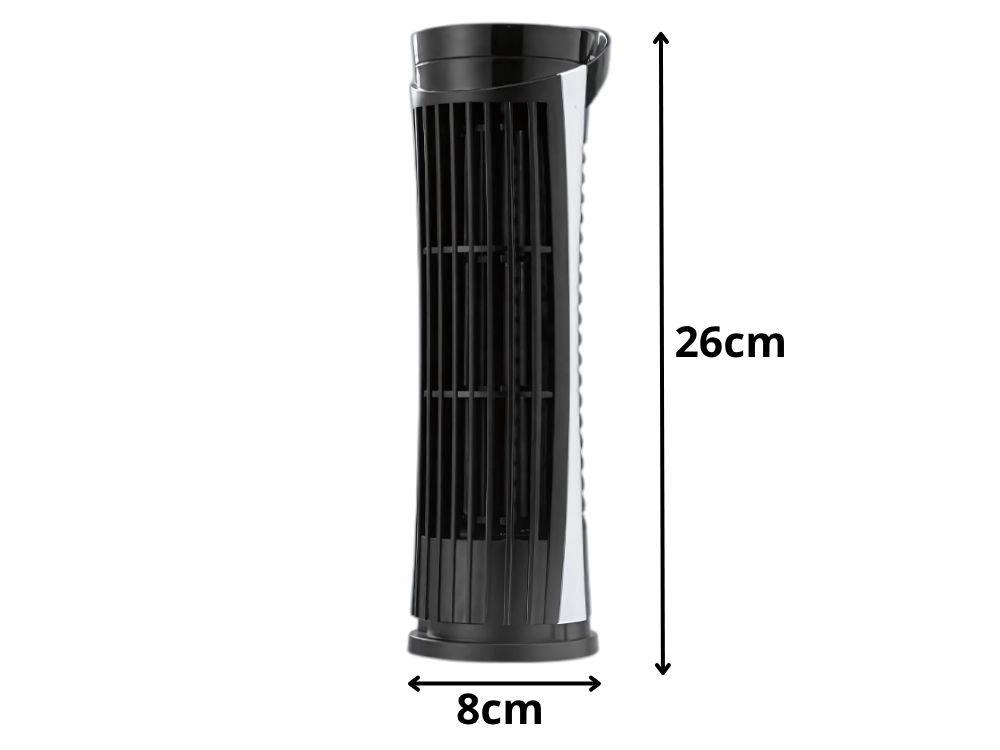 Απολαύστε δροσερό αεράκι στο γραφείο ή το κομοδίνο σας. Αυτός ο μίνι επιτραπέζιος κολωνάτος ανεμιστήρας ξεχωρίζει για τον κομψό, λεπτό σχεδιασμό, την χαμηλή στάθμη θορύβου και τον εύκολο χειρισμό με ένα μόνο κουμπί. Χάρη στην τροφοδοσία USB, τον συνδέετε εύκολα σε φορητό υπολογιστή, power bank ή φορτιστή πρίζας.