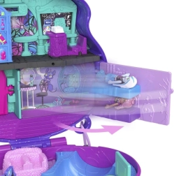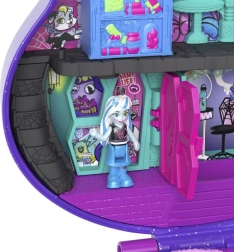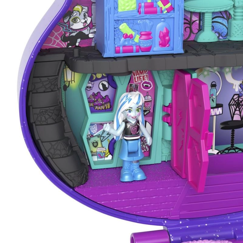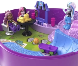 Αυτό το φορητό compact σε σχήμα του εμβληματικού κρανίου MONSTER HIGH κρύβει προσεγμένες σκηνές – αίθουσες διδασκαλίας, συρόμενη βιβλιοθήκη με μυστικό, γωνιές χαλάρωσης και ράμπα skate για εντυπωσιακά κόλπα. Στο εσωτερικό χωρούν οι μίνι φιγούρες και μικρά αξεσουάρ, ώστε το παιχνίδι να είναι πάντα έτοιμο στο σπίτι ή στο ταξίδι.