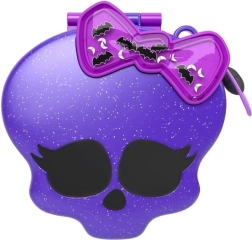 Compact σε σχήμα του cult κρανίου MONSTER HIGH με φιόγκο γεμάτο κινούμενες λάμψεις (νυχτερίδες) που εντυπωσιάζει με την πρώτη ματιά και κλείνει με ασφάλεια για παιχνίδι οπουδήποτε.