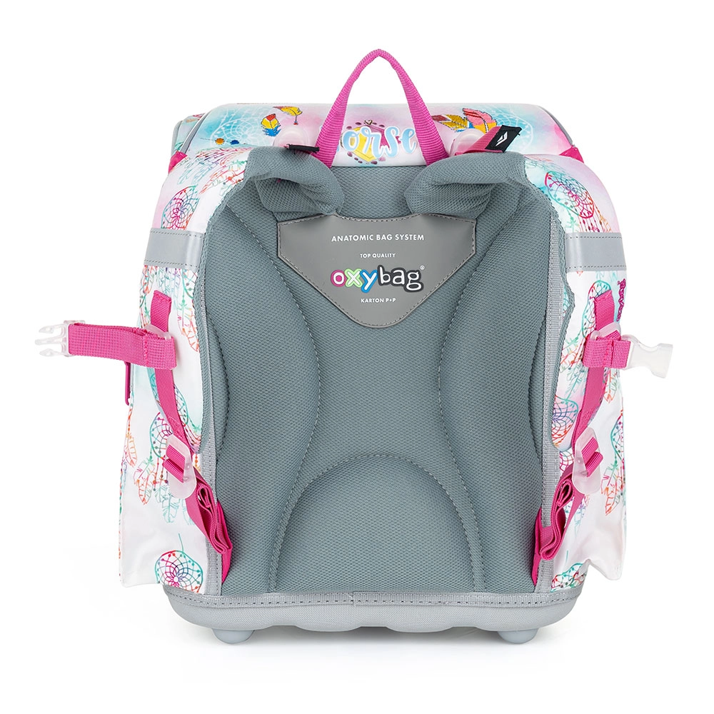 Η σχολική τσάντα της σειράς Premium Light με κομψό μοτίβο αλόγου προσφέρει κάτι παραπάνω από όμορφη εμφάνιση. Είναι κατασκευασμένη από ελαφρύ υλικό, ώστε να ζυγίζει λιγότερο από 900 g. Διαθέτει άνετη, αναπνεύσιμη επένδυση και φαρδιές ενισχυμένες τιράντες που κατανέμουν ομοιόμορφα το βάρος στους ώμους του παιδιού. Για ακόμη μεγαλύτερη άνεση περιλαμβάνονται ρυθμίσεις έλξης και θωρακικός ιμάντας.