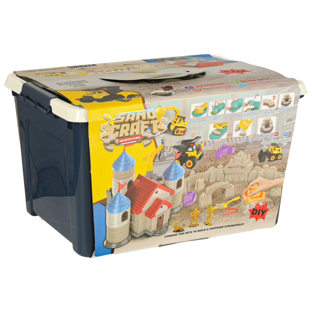 Το δημιουργικό σετ με άμμο για παιδιά είναι ένας ιδανικός τρόπος για την ανάπτυξη της φαντασίας και της λεπτής κινητικότητας. Το περιεχόμενο της συσκευασίας προσφέρει ό,τι χρειάζεται για τη δημιουργία ενός συναρπαστικού κάστρου και διασκεδαστικών σεναρίων παιχνιδιού, χάρη στα μοντέλα οχημάτων και τις φιγούρες. Τα παιδιά μπορούν, με αξεσουάρ όπως φτυαράκια και εργαλεία ταξινόμησης, να δημιουργούν τις δικές τους ιστορίες και σκηνικά.