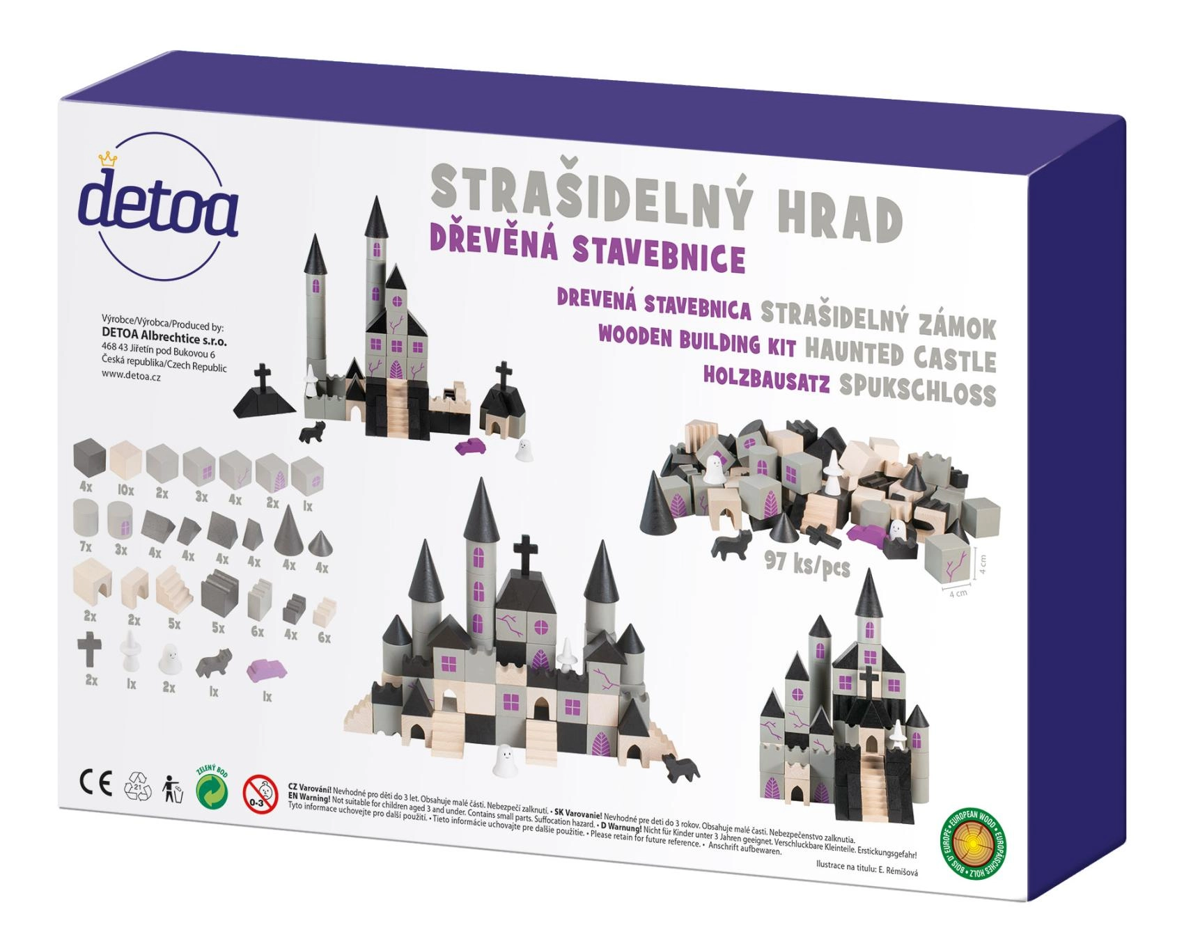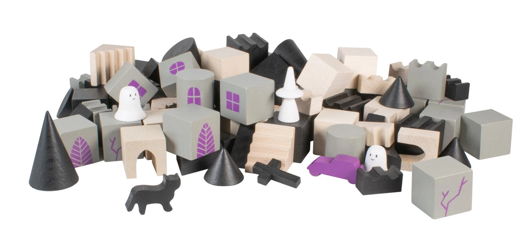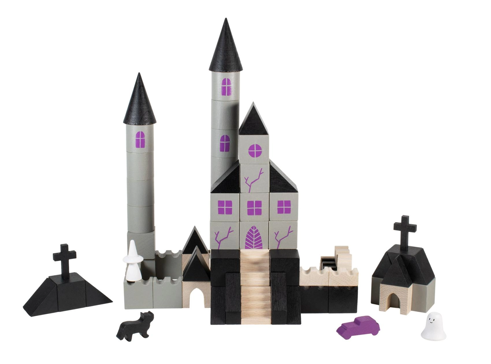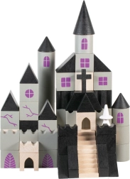 Η ξύλινη κατασκευαστική σειρά Στοιχειωμένο κάστρο φέρνει στον παιδικό κόσμο λίγη μαγεία και μυστήριο. Κάθε ένα από τα 97 κομμάτια έχει εκτύπωση και έρχεται σε διαφορετικά σχήματα και μεγέθη, επιτρέποντας ατελείωτες δυνατότητες στην κατασκευή του κάστρου.
