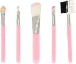 Πέντε διαφορετικά πινέλα με ροζ λαβές και μεταλλικές λεπτομέρειες είναι ιδανικά για αποτελεσματική εφαρμογή καλλυντικών.