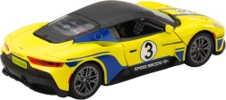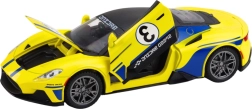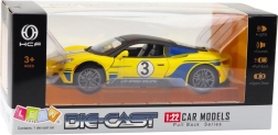 Αυτό το υπέροχο σπορ αυτοκίνητο διαθέτει φωτεινά και ηχητικά εφέ, τα οποία ενεργοποιούνται με ένα απαλό πάτημα στο καπό, προσφέροντας ρεαλιστική εμπειρία αγώνων αυτοκινήτου. Χάρη στον μηχανισμό τριβής, το αυτοκίνητο τίθεται εύκολα σε κίνηση, αρκεί ένα ελαφρύ σπρώξιμο προς τα εμπρός.