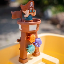 Ο πύργος με πειρατή, η τσουλήθρα και οι υδροτροχοί αντιδρούν όταν ρίχνεται νερό. Τα παιδιά ανακαλύπτουν την αιτία και το αποτέλεσμα, εξασκούν τη λεπτή κινητικότητα και καλλιεργούν τη φαντασία.