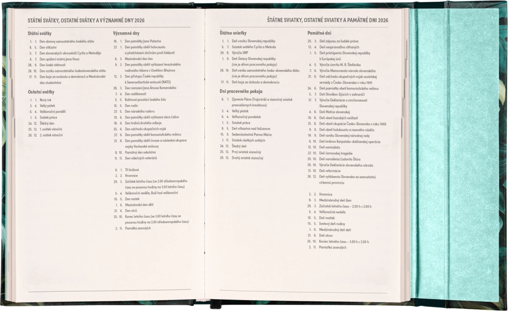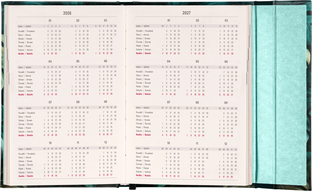 Αν αναζητάτε έναν αποδοτικό τρόπο να έχετε τα σχέδιά σας υπό έλεγχο, το εβδομαδιαίο ημερολόγιο Monstera 2026 είναι η ιδανική επιλογή. Χάρη στην οριζόντια διάταξη και την ενσωμάτωση τσεχικού και σλοβακικού ημερολογίου, το ημερολόγιο προσφέρει χώρο για τις προσωπικές και επαγγελματικές σας υποχρεώσεις. Απολαύστε τους πρακτικούς μηνιαίους πίνακες, ιδανικούς για τον προγραμματισμό μεγαλύτερων διακοπών ή αδειών. Το ημερολόγιο περιλαμβάνει επίσης κατάλογο τσεχικών και σλοβακικών αργιών και ονομαστικών εορτών.