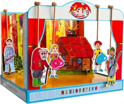 Αυτό το σετ κουκλοθεάτρου είναι ιδανικό για διασκέδαση και για την ανάπτυξη της παιδικής φαντασίας και δημιουργικότητας. Περιλαμβάνει: