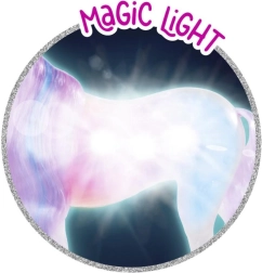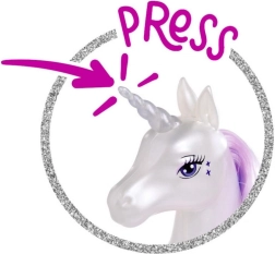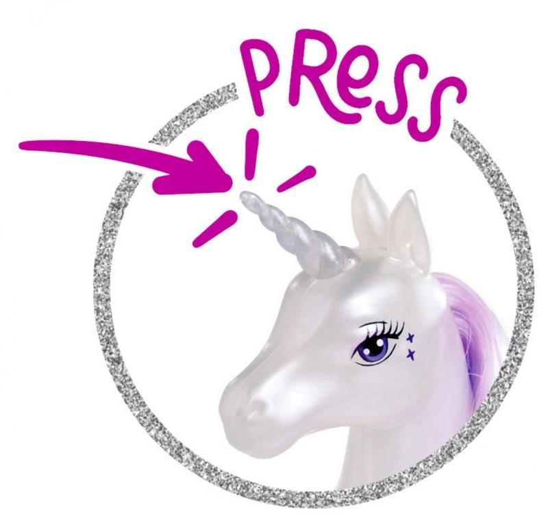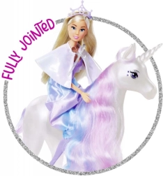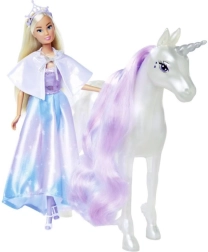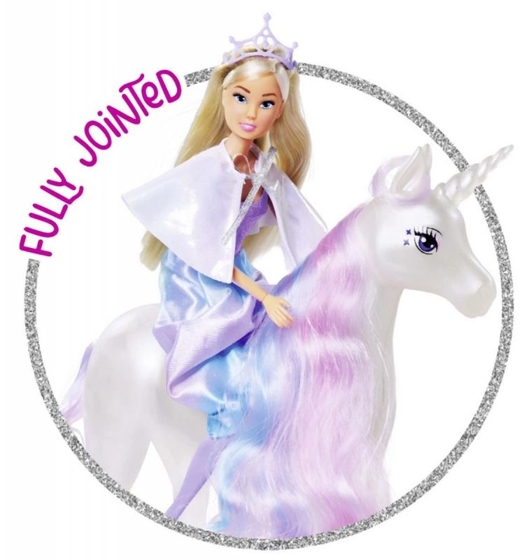 Ανακαλύψτε έναν κόσμο φαντασίας με την κούκλα Steffi, ντυμένη με μαγικό πριγκιπικό φόρεμα, ιδανικό για κάθε παραμύθι. Ο πιστός της σύντροφος, ο μονόκερος, όχι μόνο εντυπωσιάζει με τη φωτιζόμενη λειτουργία του, αλλά επιτρέπει επίσης να δημιουργείτε διάφορα χτενίσματα χάρη στη μακριά του χαίτη.