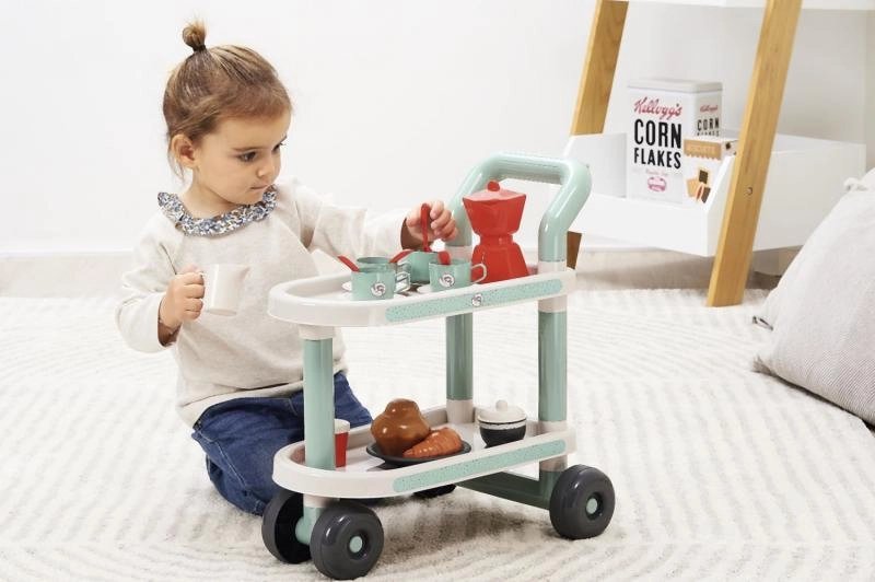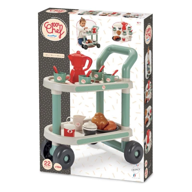 Παρουσιάζουμε το καρότσι πρωινού με αξεσουάρ, ιδανικό για μικρούς μπαρίστες και αρτοποιούς. Αυτό το σετ περιλαμβάνει συνολικά 22 τεμάχια, που προσφέρουν όλα όσα χρειάζονται για το τέλειο δεκατιανό. Το καρότσι έχει ροδάκια, γεγονός που εξασφαλίζει εύκολη μεταφορά στο δωμάτιο ή στον κήπο.