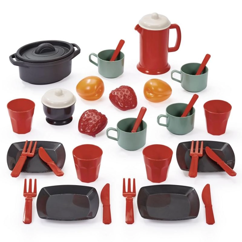 - Πιάτα, μαχαιροπίρουνα, ποτηράκια, κούπες, μικρή κανάτα με καπάκι, κατσαρόλα με καπάκι, φρούτα