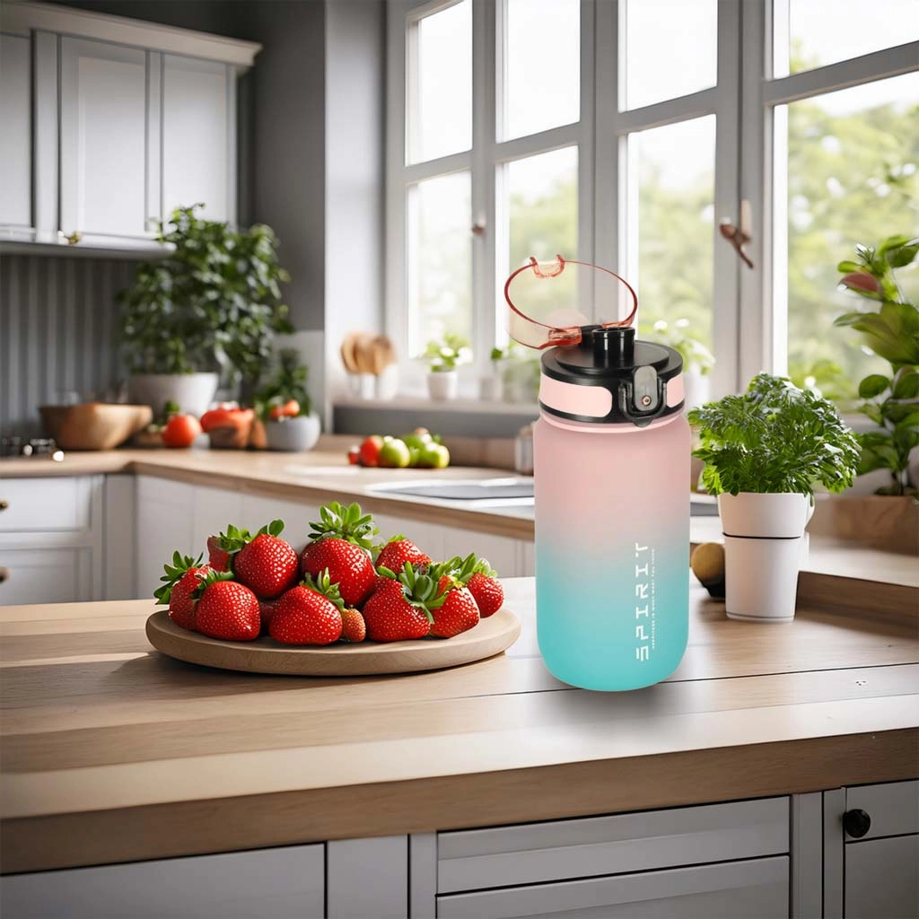Το ροζ-μπλε μπουκάλι νερού είναι ένα πρακτικό αξεσουάρ για όσους θέλουν να παρακολουθούν την πρόσληψη νερού κατά τη διάρκεια της ημέρας. Με τη βοήθεια της ορατής κλίμακας με γραφικά μπορείτε να ελέγχετε καλύτερα πόσο νερό έχετε ήδη πιει και πόσο χρειάζεται ακόμη να συμπληρώσετε. Η μέγιστη χωρητικότητα είναι 600 ml, διευκολύνοντας την παρακολούθηση της ημερήσιας πρόσληψης υγρών.