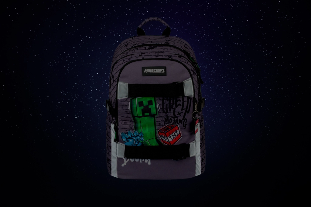 Αυτό το σετ ανήκει στα δημοφιλή μοντέλα χάρη στην ελαφρότητα και τη λειτουργικότητά του. Το σχολικό σακίδιο Skate Minecraft TNT διαθέτει ιμάντες για σκέιτμπορντ, τρεις κλειστές θήκες και επενδεδυμένη θήκη για φορητό υπολογιστή. Χάρη στην ανατομική πλάτη και τους ρυθμιζόμενους ιμάντες εξασφαλίζει άνετη μεταφορά και εξαιρετική προσαρμοστικότητα.