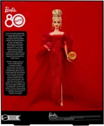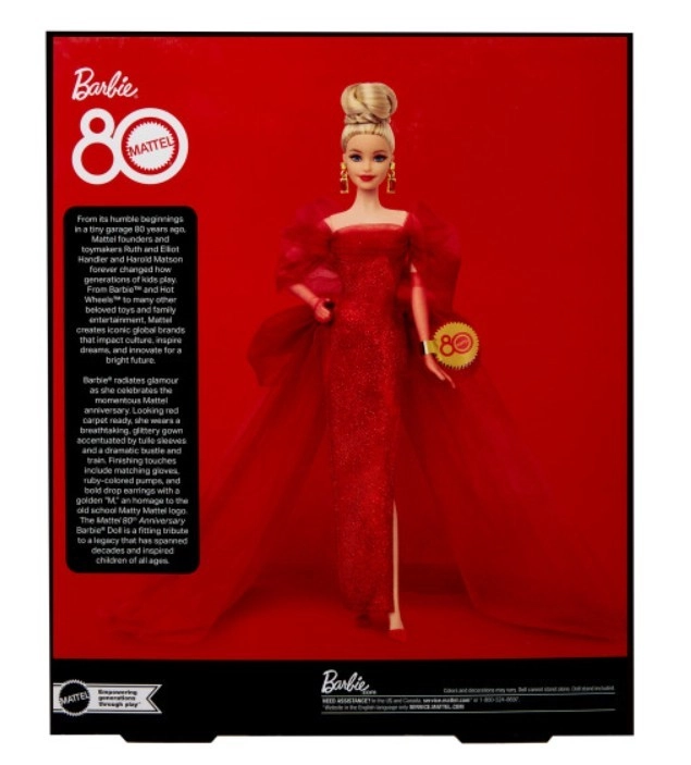 Αυτή η συλλεκτική Barbie για τα 80ά γενέθλια της Mattel γιορτάζει την πλούσια κληρονομιά της εταιρείας. Κομψό στιλ, εμβληματικά σχέδια και ένα εορταστικό επέτειο έκδοσης κάνουν αυτή την κούκλα ένα υπέροχο κομμάτι για συλλέκτες.
