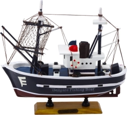 Το μοντέλο Flying Lady είναι ένα διακοσμητικό αντίγραφο κλασικού αλιευτικού σκάφους, εμπνευσμένο από σκάφη που χρησιμοποιούνται στην παράκτια και λιμενική αλιεία. Διαθέτει χαρακτηριστική υπερκατασκευή, ψηλό πύργο καπετάνιου, έναν μόνο ιστό με αρματωσιά και τεχνικές λεπτομέρειες που μιμούνται ραντάρ και καμινάδες, προσδίδοντας μοναδική, ρεαλιστική εμφάνιση. Είναι κατασκευασμένο από ξύλο και φινιρισμένο στο χέρι, κάτι που ενισχύει τη συλλεκτική του αξία και τον έντονο ναυτικό χαρακτήρα.