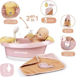 Απολαύστε ρεαλιστικό μπάνιο για κούκλες με τη μπανιέρα Smoby Baby Nurse, που είναι εξοπλισμένη με ηλεκτρονικό ντους και λειτουργία φυσαλίδων με φως. Αρκεί να πατήσετε το κουμπί και το νερό αρχίζει να ρέει από το αυτόματο τηλέφωνο ντους, προσφέροντας διασκέδαση και αίσθηση πραγματικού μπάνιου.
