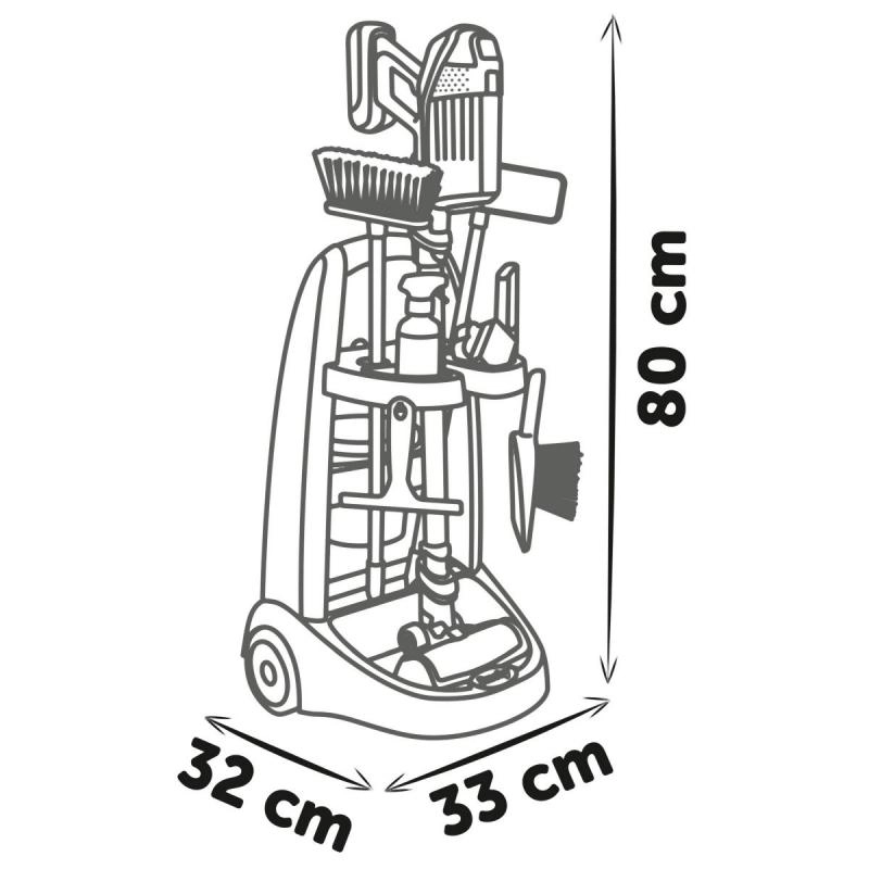 Αυτό το καροτσάκι καθαρισμού είναι ιδανικό για παιδιά που θέλουν να βοηθήσουν στο σπίτι. Ανάμεσα στα αξεσουάρ περιλαμβάνονται:
