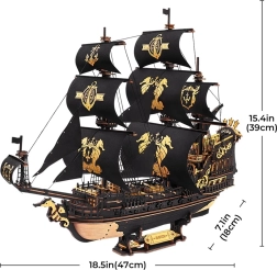 Λεπτομερές μοντέλο πολεμικού πλοίου με μαύρα-χρυσά πανιά και πλούσιους στολισμούς. Κάθε λεπτομέρεια είναι επιμελώς δουλεμένη ώστε να ξεχωρίζει και να δίνει στο μοντέλο σας ρεαλιστική εμφάνιση.
