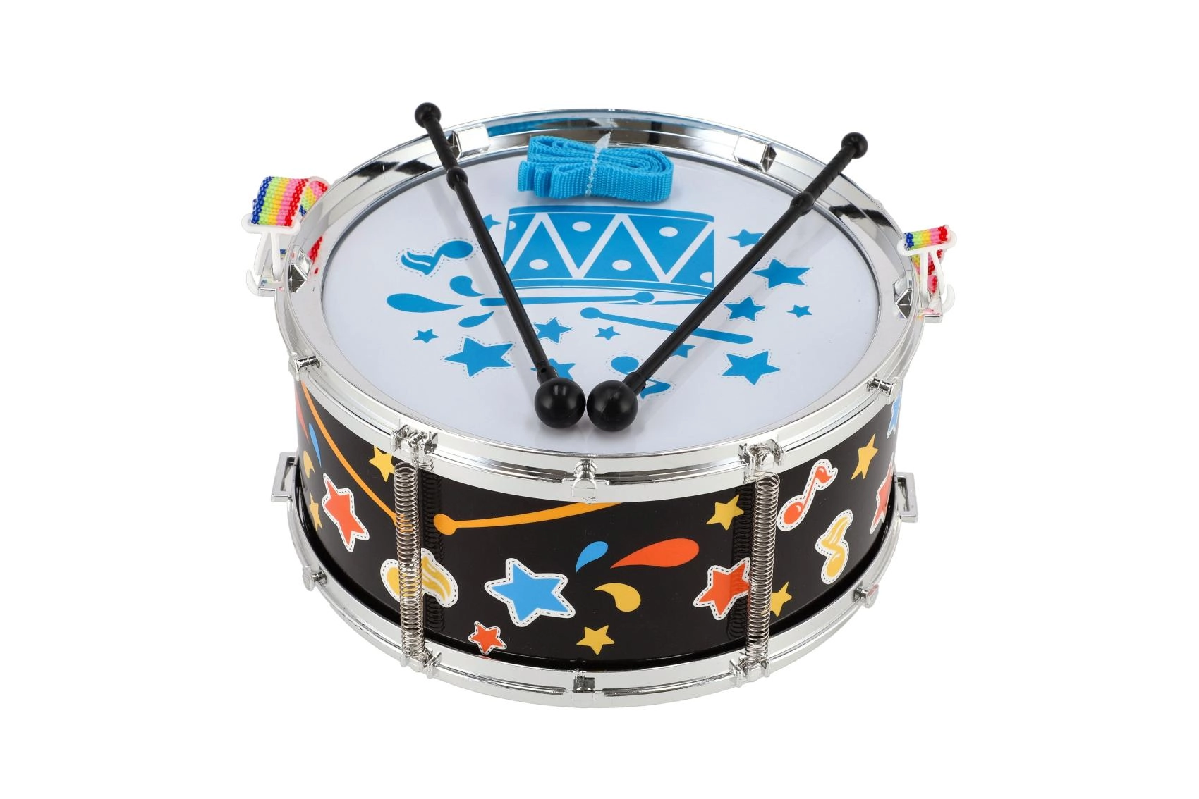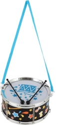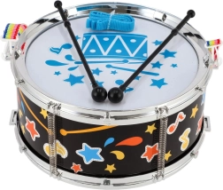 Αυτό το ελαφρύ και ανθεκτικό πλαστικό τυμπανάκι είναι εξαιρετική επιλογή για πρώτο μουσικό όργανο. Χάρη στο ρυθμιζόμενο λουράκι, τα παιδιά το φορούν εύκολα στον ώμο και μπορούν να παίζουν στο σπίτι, στον κήπο ή στις εκδρομές. Στη συσκευασία περιλαμβάνονται μπαγκέτες, ώστε η διασκέδαση να ξεκινήσει αμέσως μετά το άνοιγμα.