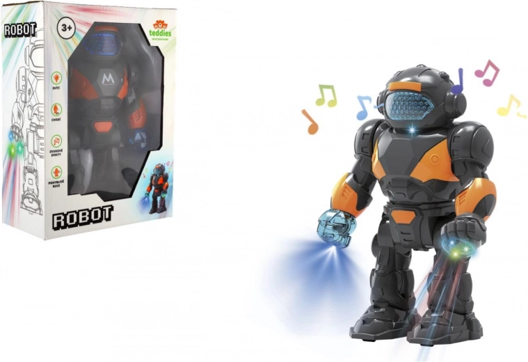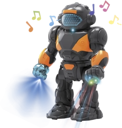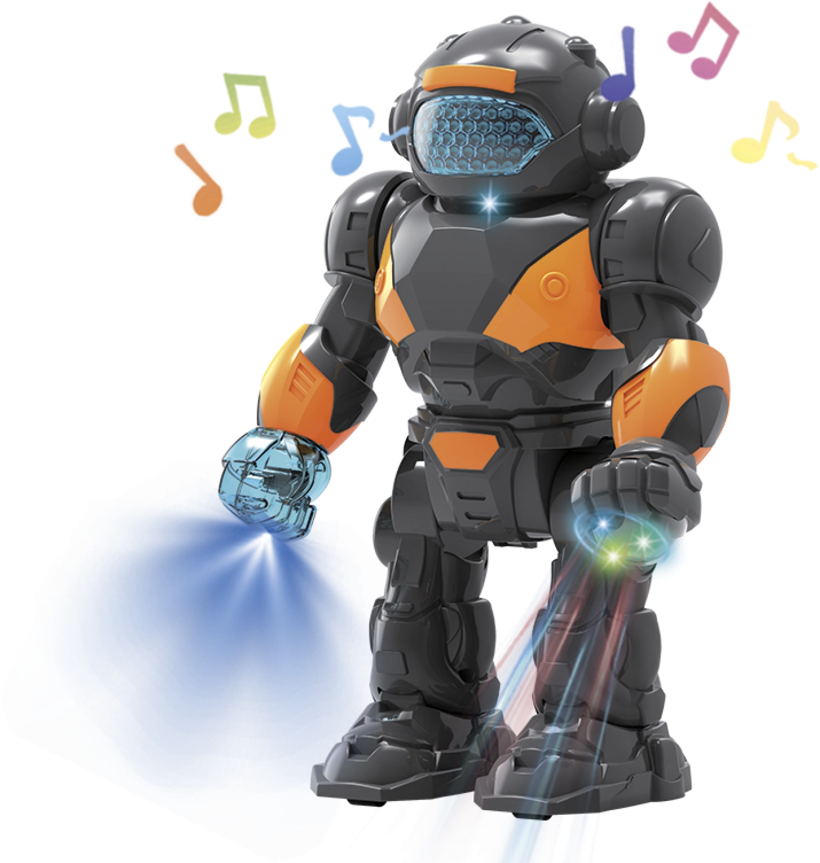 Η διασκέδαση με αυτό το πλαστικό ρομπότ ύψους 22 cm δεν έχει τέλος. Με μια απλή ενεργοποίηση τίθεται σε λειτουργία και γίνεται αναπόσπαστο μέρος κάθε παιχνιδιού. Κατάλληλο για παιδιά από 3 ετών, αυτό το ρομπότ μπορεί να πολεμήσει εισβολείς ή να προστατεύσει μια διαστημική βάση. Είναι ένα εξαιρετικό παιχνίδι που αναπτύσσει τη φαντασία των μικρών παιδιών καθώς και τις κινητικές τους δεξιότητες. Με την ενεργοποίηση, το ρομπότ προσφέρει: