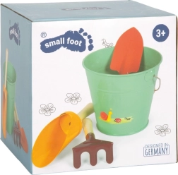Το σετ κηπουρικών εργαλείων Tiny Garden περιλαμβάνει όλα όσα χρειάζονται τα μικρά παιδιά για διασκέδαση στον κήπο ή στην παραλία. Χάρη στη στιβαρή μεταλλική και ξύλινη κατασκευή, τα εργαλεία είναι ανθεκτικά και ασφαλή για παιδική χρήση. Τα χαρούμενα ζωάκια πάνω στον κουβά προσθέτουν παιχνιδιάρικη διάθεση.