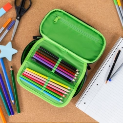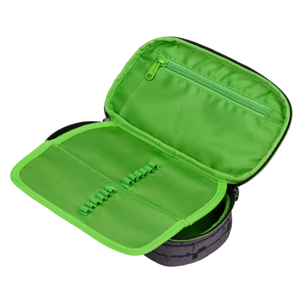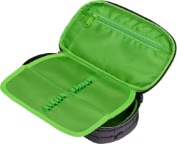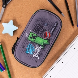 Συμπαγής σχολική κασετίνα Baagl εμπνευσμένη από το παιχνίδι Minecraft, προσφέρει ευρύχωρη κύρια θήκη και διπλό αναδιπλούμενο καπάκι για γραφικά είδη και μικροαντικείμενα.