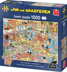 Ζήστε τη χαρά της συναρμολόγησης ενός μοναδικού παζλ από τον καταξιωμένο δημιουργό Jan van Haasteren, γεμάτο χιούμορ και χρώματα. Τα έργα του είναι γνωστά για το χαρακτηριστικό τους ύφος, όπου θα βρείτε απρόσμενες λεπτομέρειες όπως πτερύγιο καρχαρία ή αστείες φιγούρες.