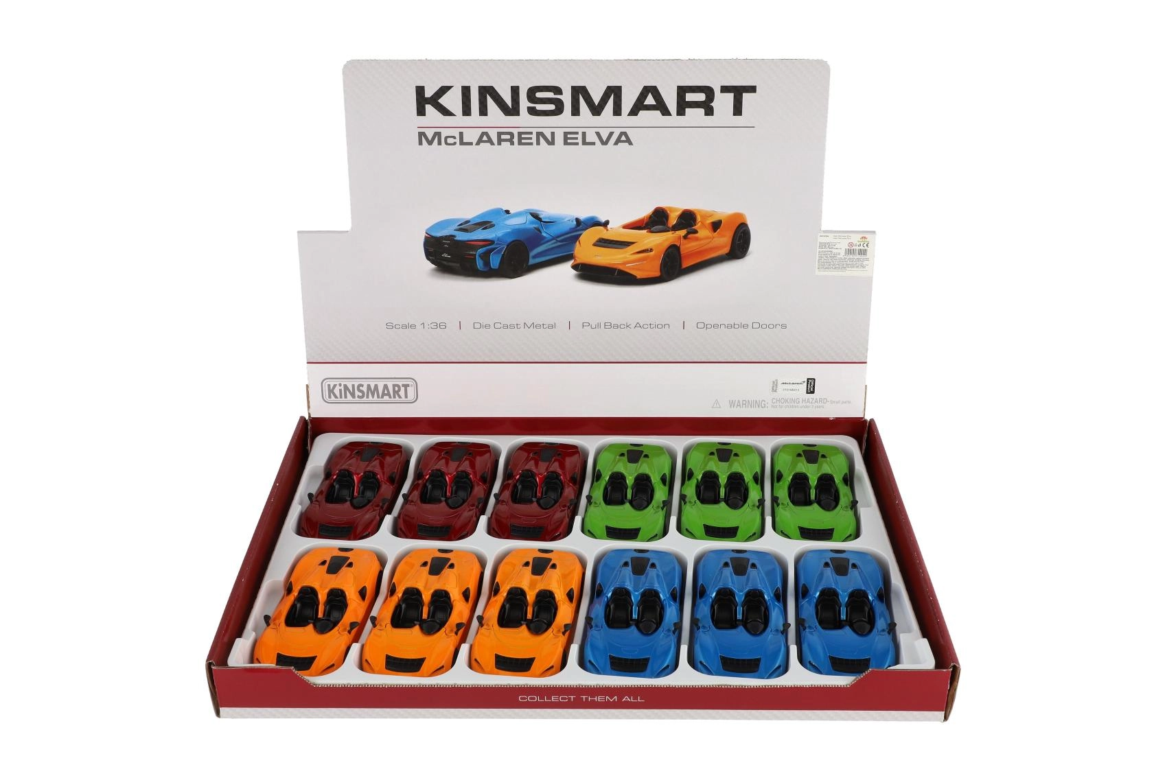 Το μοντέλο McLaren Elva από την Kinsmart είναι ένα λεπτομερώς κατασκευασμένο μεταλλικό μοντέλο με λειτουργία pull-back, που προσφέρει εύκολο παιχνίδι και διασκέδαση για παιδιά και ενήλικες. Αυτό το μοντέλο κλίμακας 1:32 είναι ιδανικό τόσο για συλλέκτες όσο και για όσους θέλουν να απολαύσουν τον καινοτόμο σχεδιασμό και τον πολυτελή χαρακτήρα των οχημάτων McLaren.