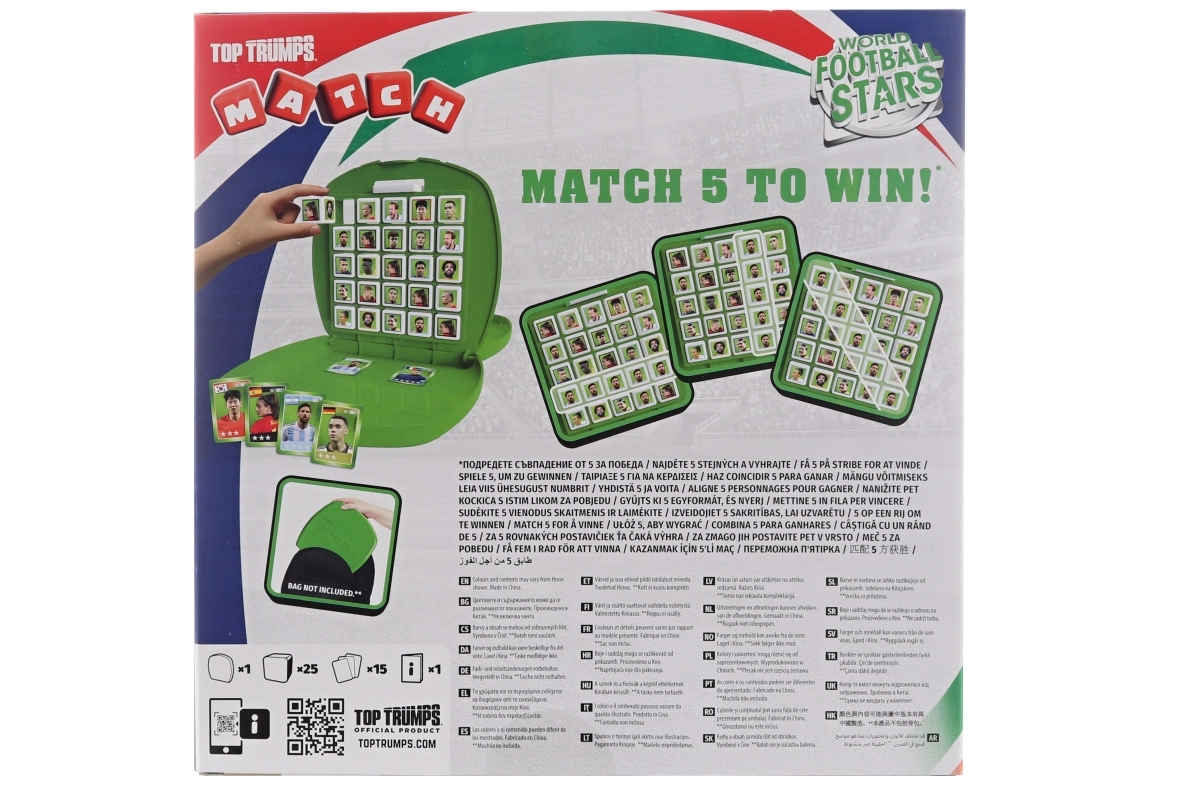 Το Match World Football Stars είναι ένα εθιστικό στρατηγικό παιχνίδι εμπνευσμένο από τον κόσμο του ποδοσφαίρου. Οι παίκτες εναλλάσσονται σπρώχνοντας κύβους έξω από το πλέγμα και προσπαθούν όσο πιο γρήγορα γίνεται να σχηματίσουν πέντε ίδια σύμβολα σε κατακόρυφη, οριζόντια ή διαγώνια σειρά. Μόλις τα καταφέρετε, φωνάζετε «MATCH» – αλλά προσοχή, ο αντίπαλος μπορεί να σας κλέψει τη νίκη αν έχει την αντίστοιχη κάρτα με τον συγκεκριμένο χαρακτήρα!