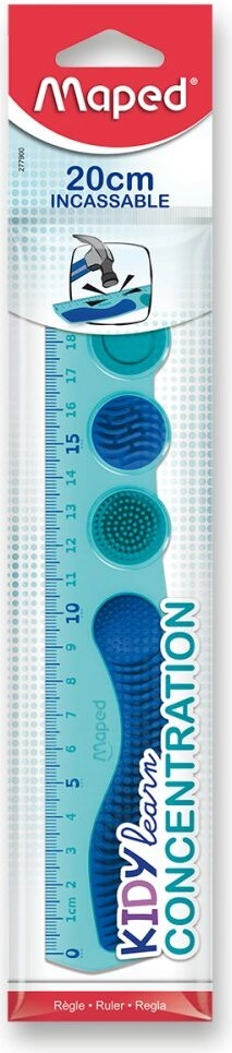 Ο χάρακας Maped Kidy Learn έχει σχεδιαστεί ώστε να βοηθά τα παιδιά να συγκεντρώνονται καλύτερα χάρη στις απτικές ζώνες και την αντιολισθητική επιφάνεια.