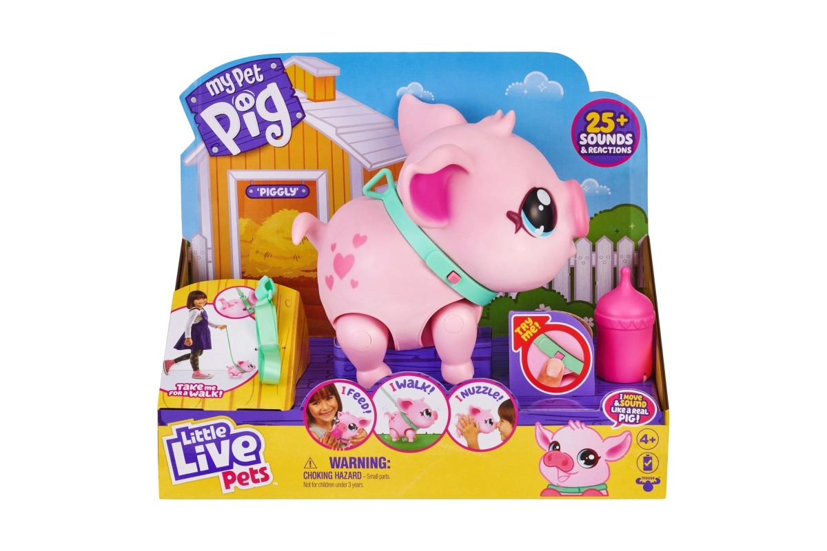 Ανακάλυψε το μαγικό κατοικίδιο που ζωντανεύει στα παιδικά χέρια. Το Piggly είναι ένα απαλό ροζ γουρουνάκι με χαριτωμένα ματάκια και κολάρο, που αντιδρά στο άγγιγμα, την κίνηση και τη φροντίδα. Με το λουρί το παίρνεις εύκολα βόλτα και, όταν πεινάσει, το ταΐζεις με το μπιμπερό.